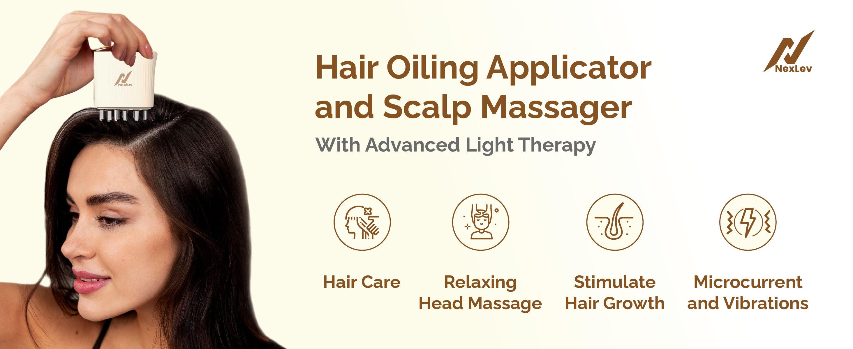Introducing the NexLev Nourish Hair Oil Applicator EA-01 Pro! Featuring Red & Blue Light Therapy with EMS Microcurrent to boost hair growth, a 10ml oil tank, and 60-min run time. Enjoy high-frequency massage for better absorption, IPX7 waterproof for easy cleaning. Ideal for deep scalp care.