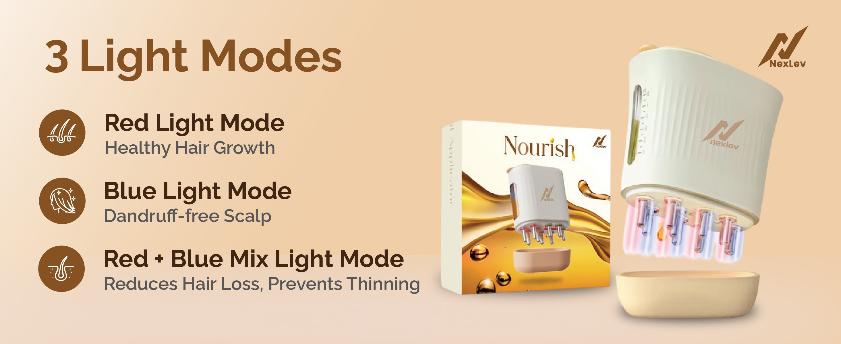 NexLev Nourish Hair Oil Applicator| Red & Blue Light Therapy EA-01 Pro