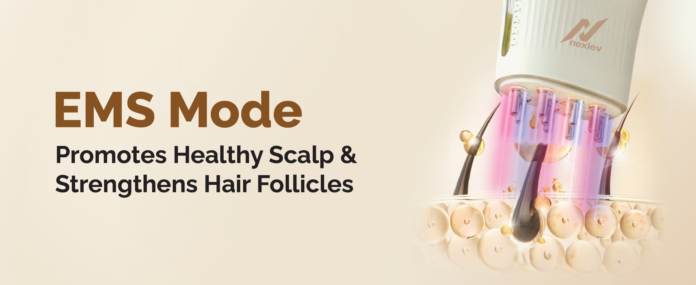• STIMULATES SCALP CIRCULATION – EMS technology boosts blood flow to the scalp, enhancing hair follicle health and supporting natural hair growth.