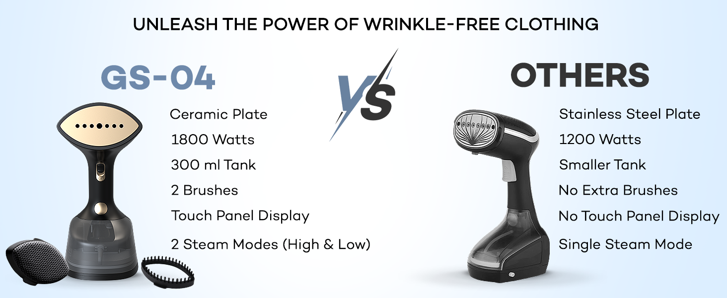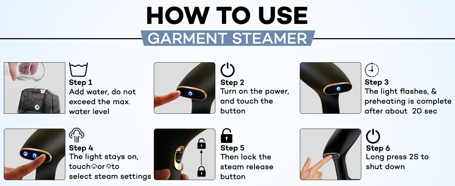 Khatija This garment steamer produces steam quickly and helps to iron my clothes in some minutes. Good touch control and has over heat protection.Should have proper current supply.