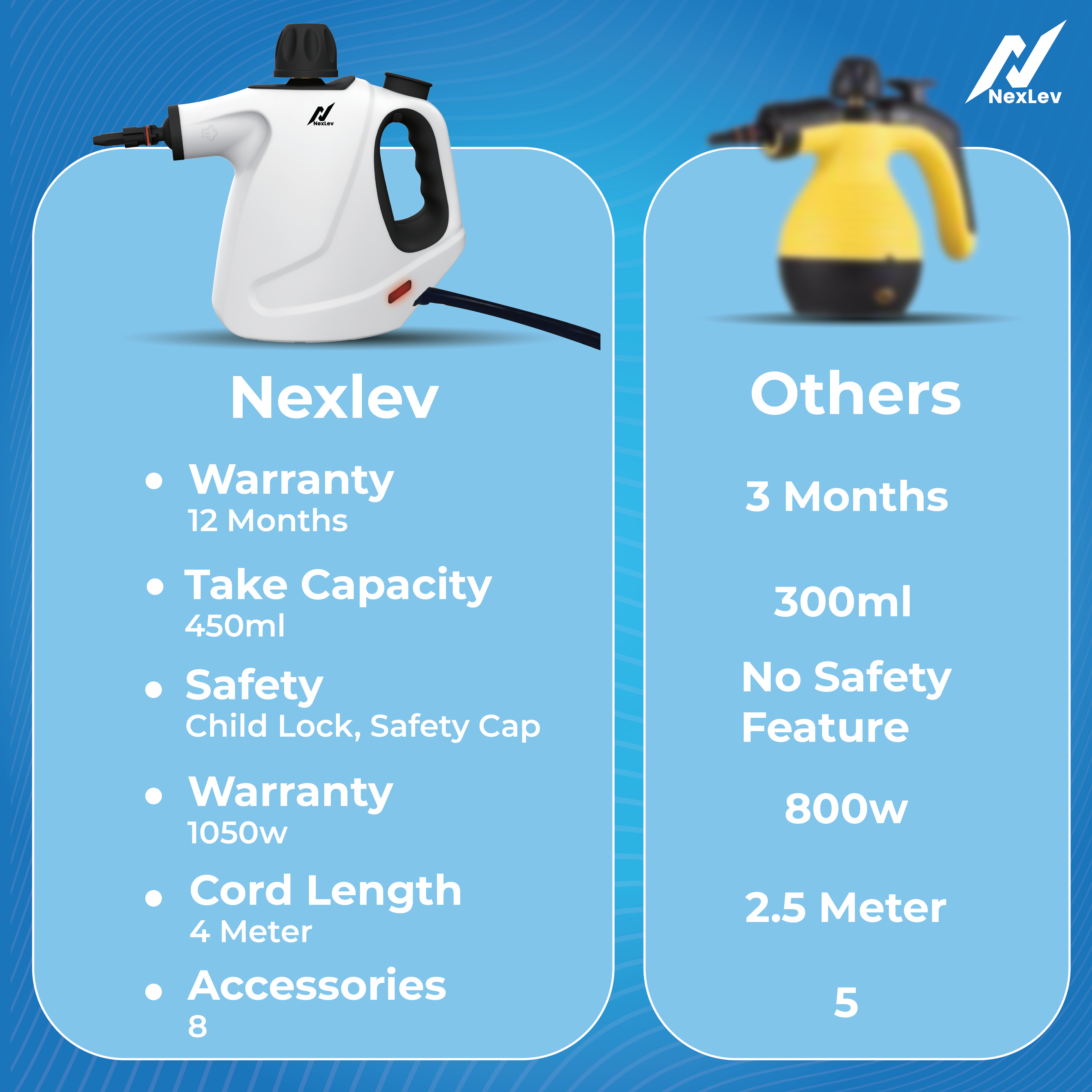 Nexlev 10-in-1 Foldable Steam Cleaner & Mop | 350ml Tank | 5M Cord | SC-04