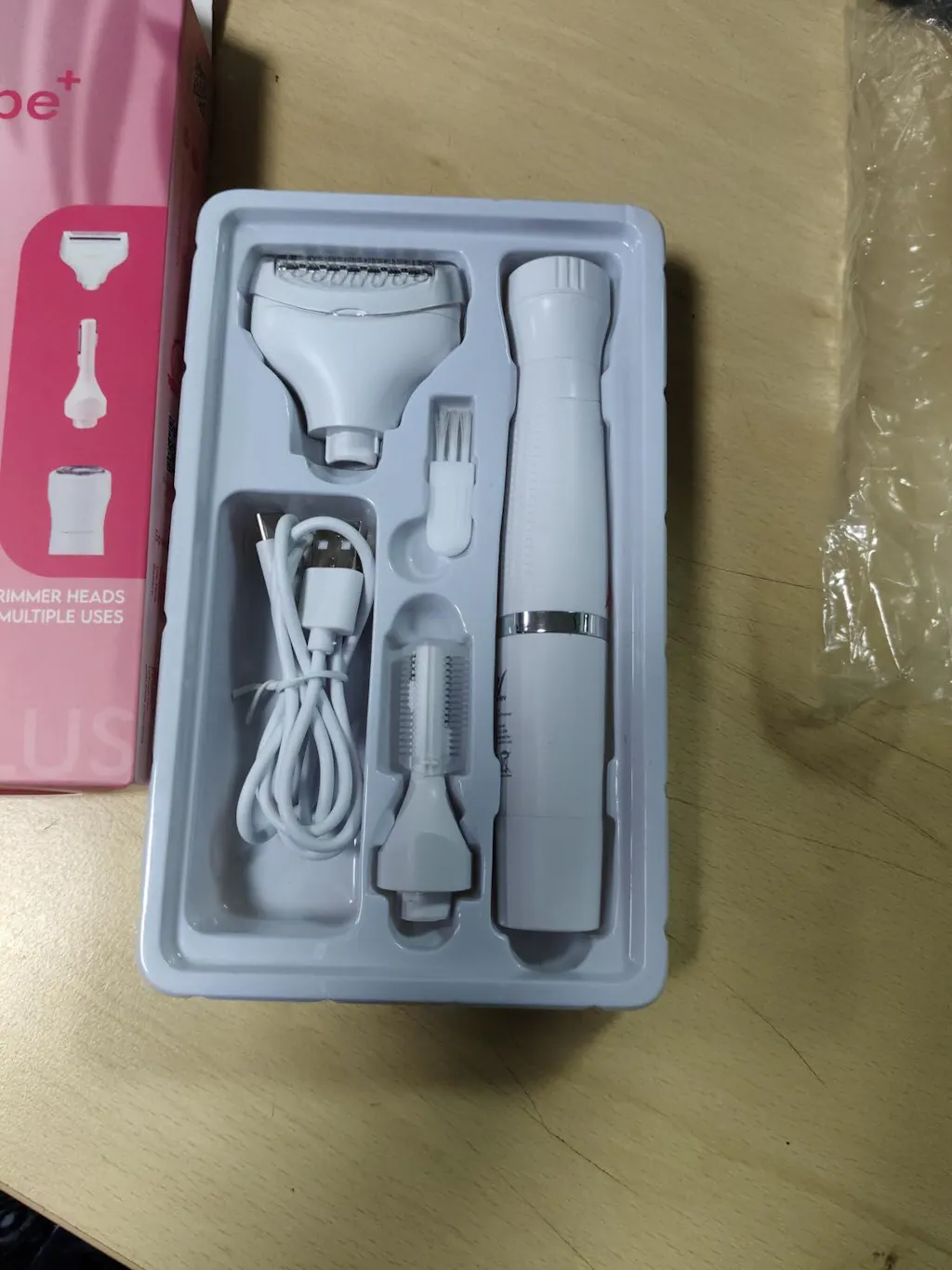 Facial Trimmer Head, Cleaning Brush, Trimmer, Bikini Comb, Body Trimmer Head, Eyebrow Trimmer Head, Travel Pouch, Eyebrow Comb